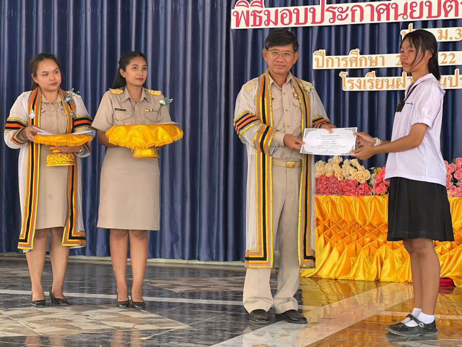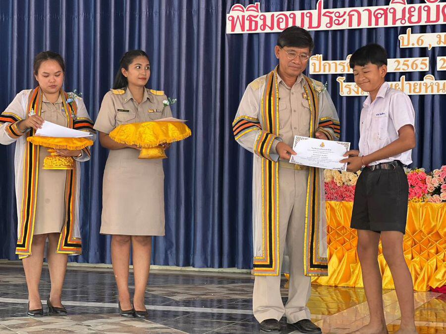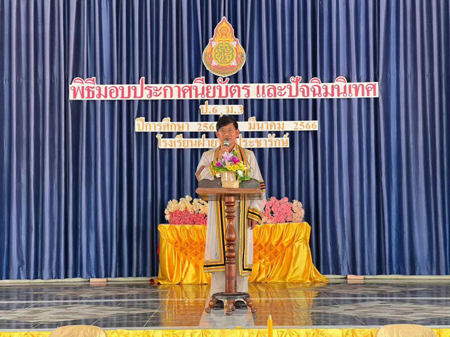 โรงเรียนฝายหินประชารักษ์จัดพิธีปัจฉิมนิเทศและมอบประกาศนียบัตรให้แก่นักเรียนที่สำเร็จการศึกษาระดับชั้นประถมศึกษาปีที่ ๖ และการศึกษาภาคบังคับ (ม.๓) ประจำปีการศึกษา ๒๕๖๕ ในวันพุธที่ ๒๒ มีนาคม ๒๕๖๖ ณ อาคารเอนกประสงค์โรงเรียนฝายหินประชารักษ์ S:0