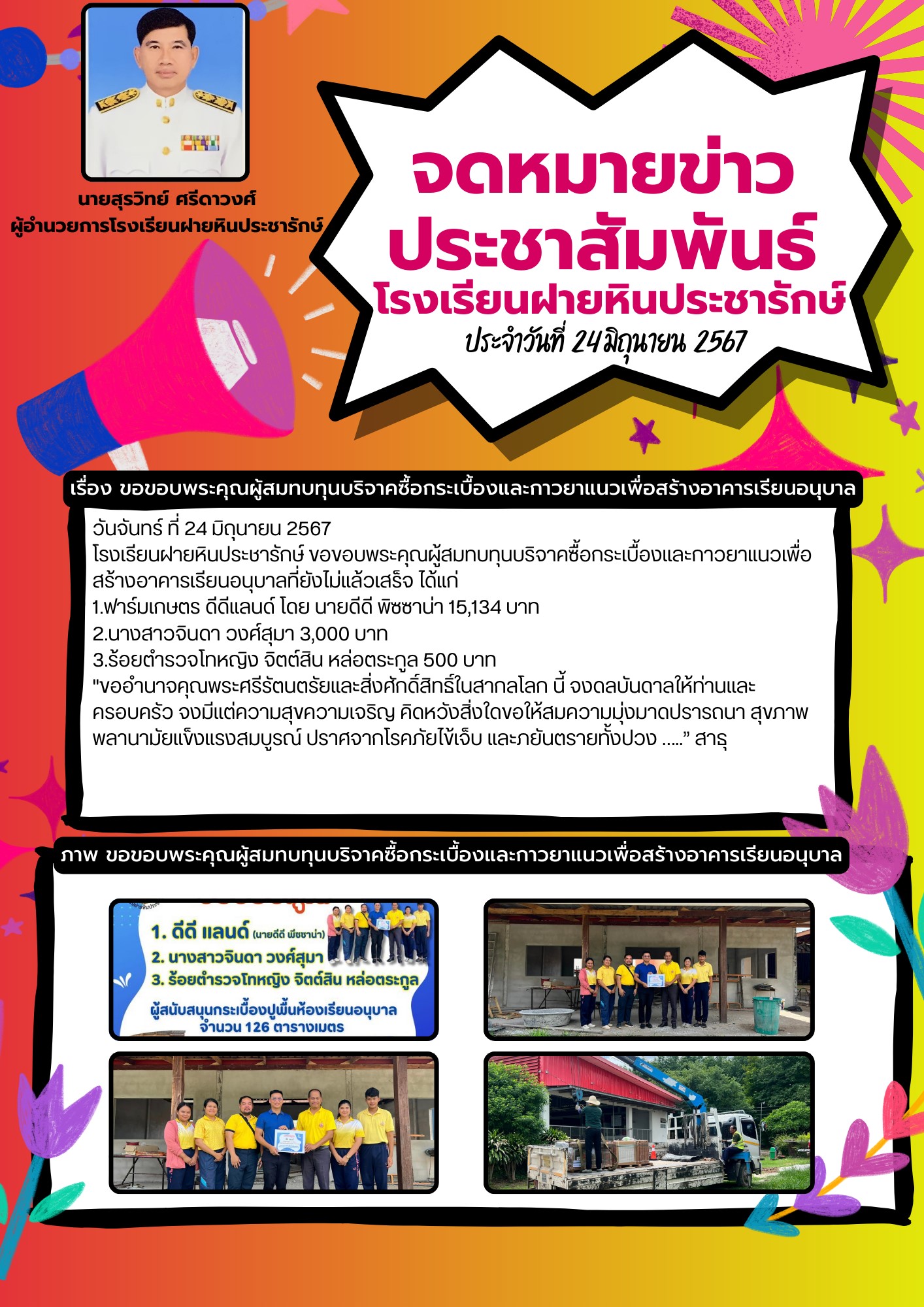 ขอขอบคุณผู้สมทบทุนบริจาคกระเบื้องสร้างอาคารอนุบาล