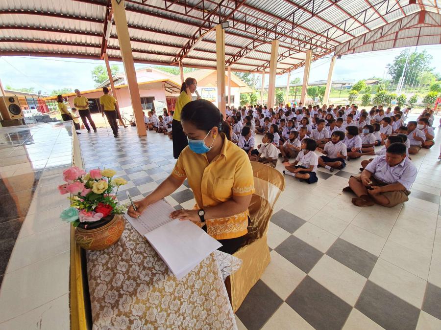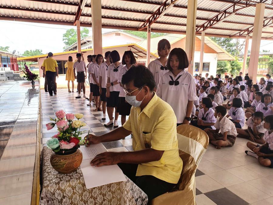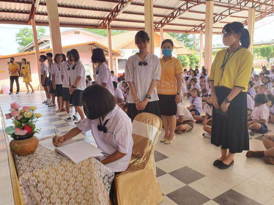 โรงเรียนฝายหินประชารักษ์จัดพิธีลงนามถวายพระพรแด่พระบาทสมเด็จพระเจ้าอยู่หัว เนื่องในวันเฉลิมพระชนมพรรษา ๖๘ พรรษา S:0