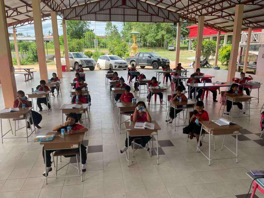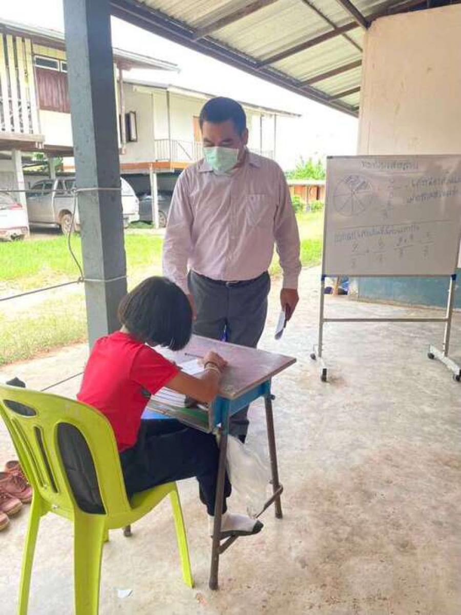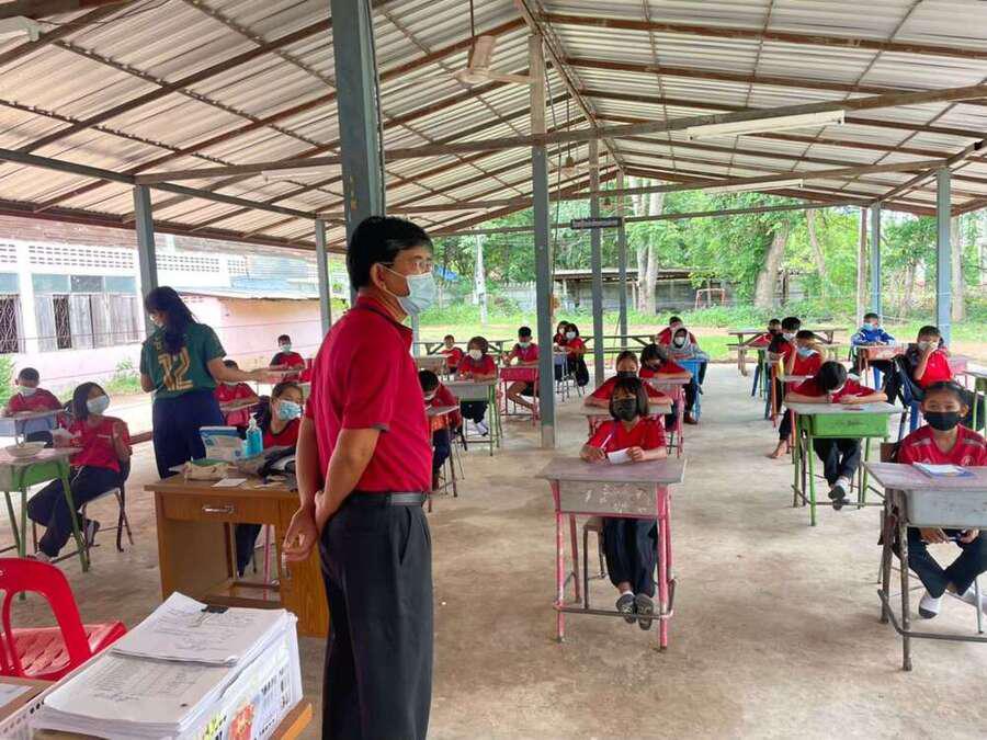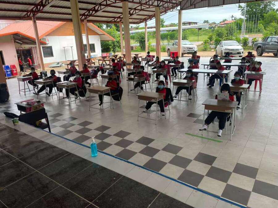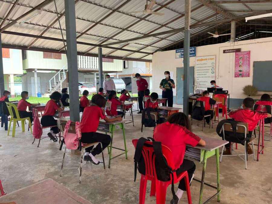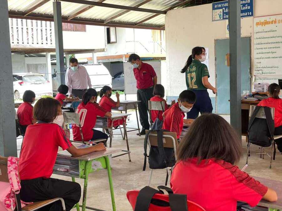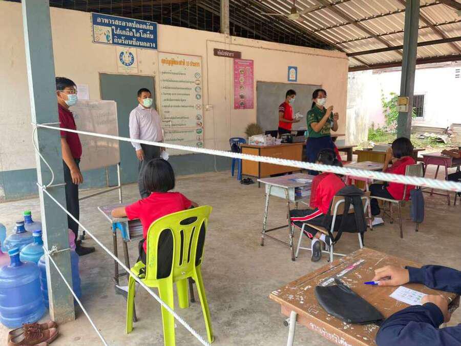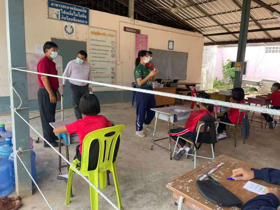 วันที่ 15 มิถุนายน 2564 นายสุขอนันต์ อักษร ศึกษานิเทศก์เขตพื้นที่การศึกษาประถมศึกษาหนองบัวลำภูเขต 1 เข้าเยี่ยมนิเทศการจัดการเรียนการสอนภาคเรียนที่ 1/2564 โรงเรียนฝายหินประชารักษ์ โดยโรงเรียนจัดการเรียนการสอน On Site จัดที่นั่งนักเรียนห่างกันตามมาตรการป้องกันการแพร่เชื้อไวรัสโคโรนา 2019 Social distancing S:0