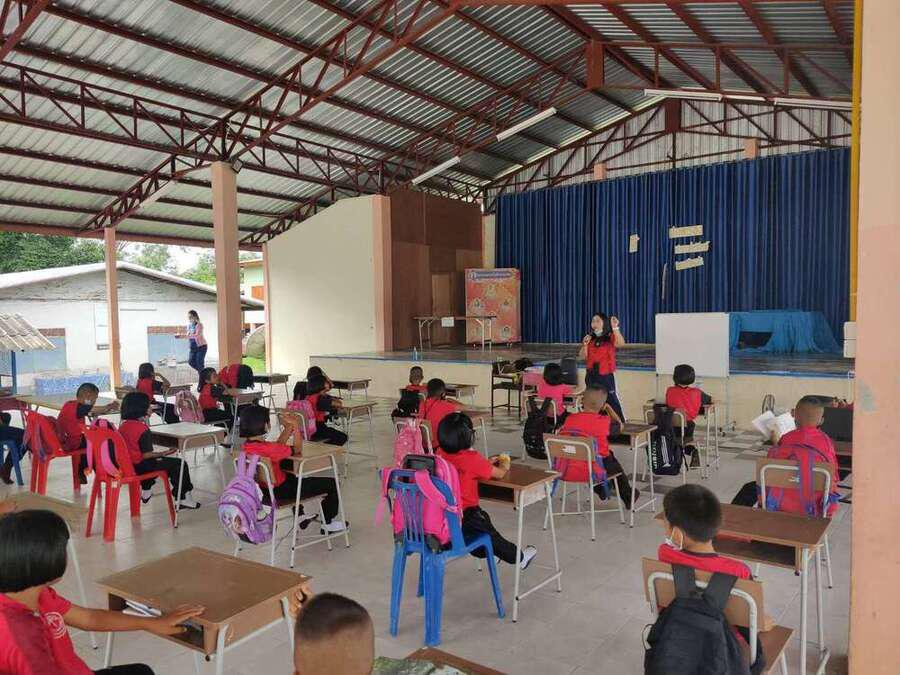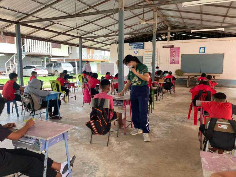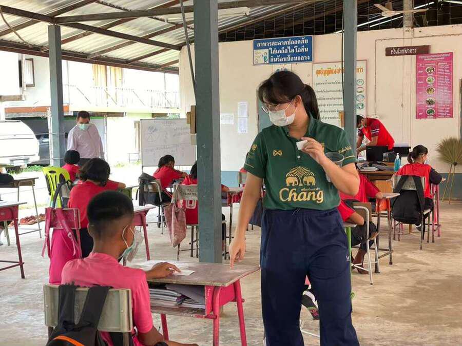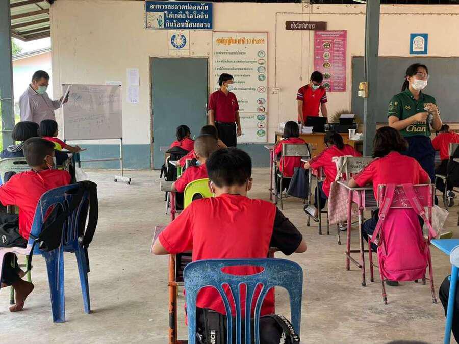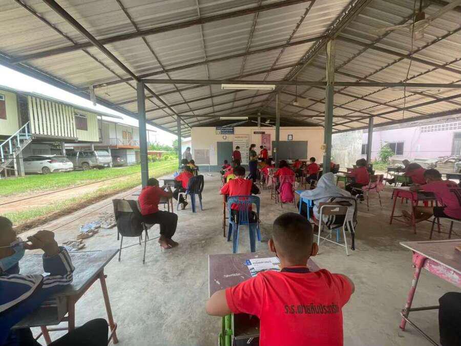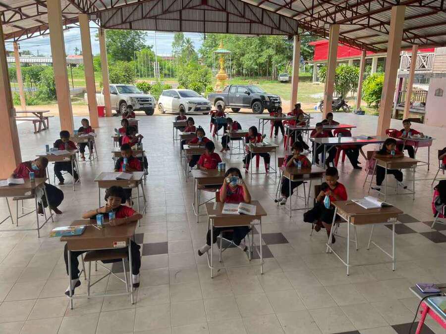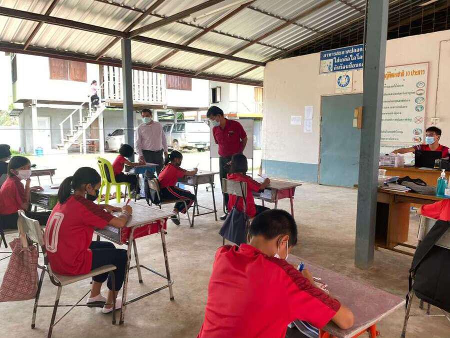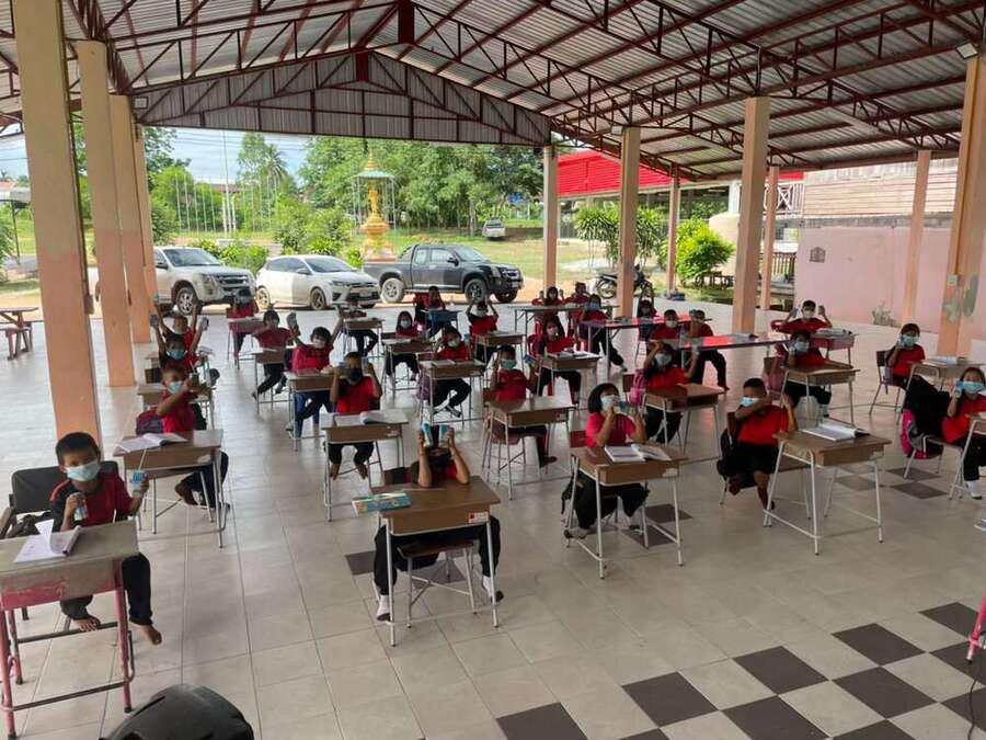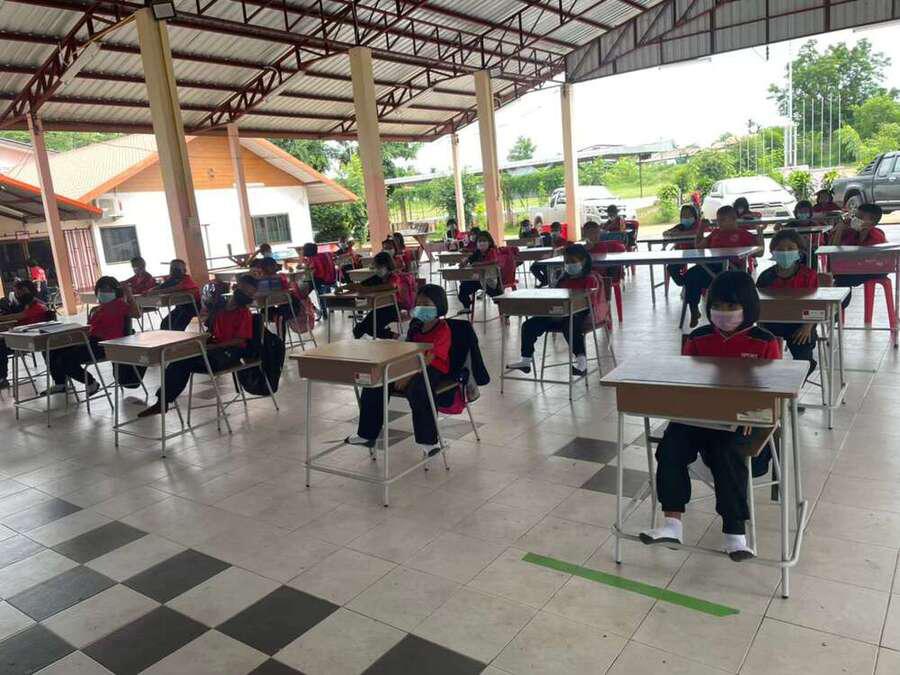 วันที่ 15 มิถุนายน 2564 นายสุขอนันต์ อักษร ศึกษานิเทศก์เขตพื้นที่การศึกษาประถมศึกษาหนองบัวลำภูเขต 1 เข้าเยี่ยมนิเทศการจัดการเรียนการสอนภาคเรียนที่ 1/2564 โรงเรียนฝายหินประชารักษ์ โดยโรงเรียนจัดการเรียนการสอน On Site จัดที่นั่งนักเรียนห่างกันตามมาตรการป้องกันการแพร่เชื้อไวรัสโคโรนา 2019 Social distancing S:0