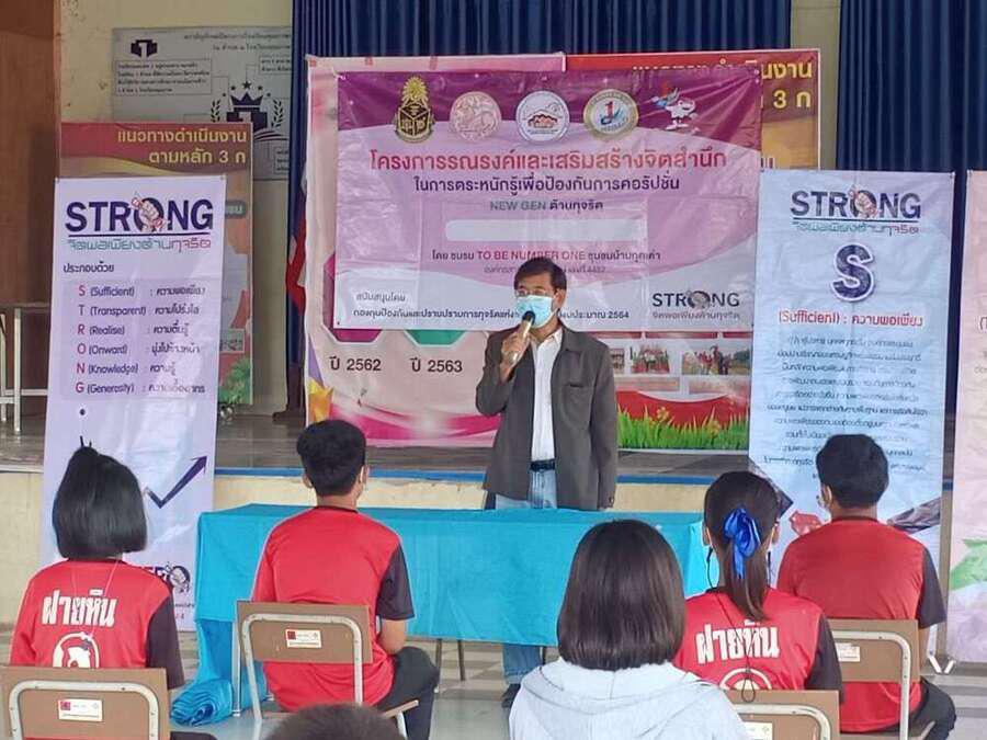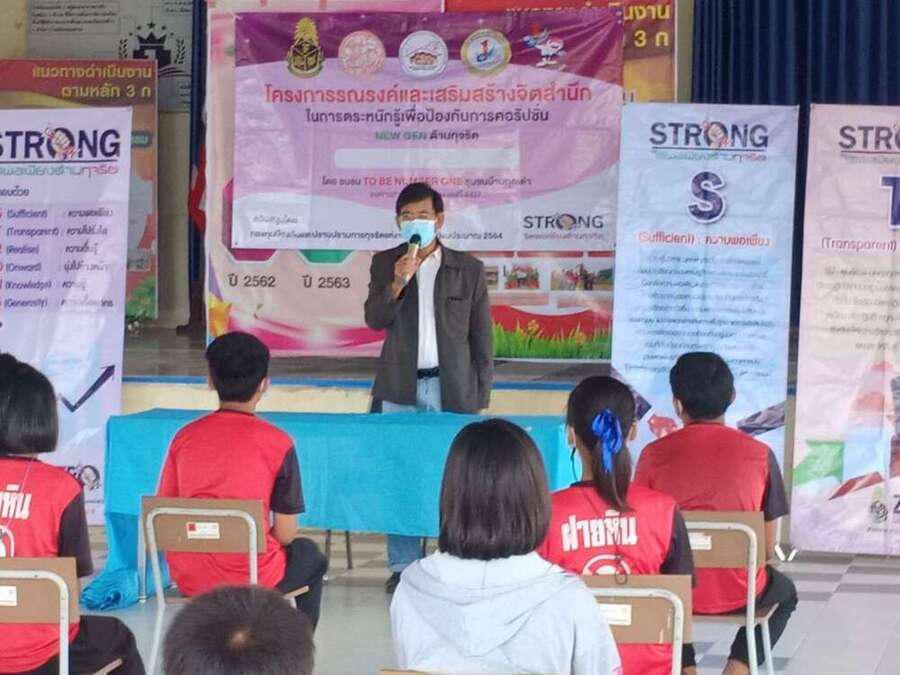 วันที่ 3 กันยายน 2564 ชมรมสตรอง-จิตอาสาต้านทุจริต ซึ่งได้รับการสนับสนุนงบประมาณจากสำนักงานปราบปรามและป้องกันการทุจริตแห่งชาติ จังหวัดหนองบัวลำภู จัดกิจกรรมโครงการปลูกจิตสำนึกในการต้านทุจริตให้กับคณะครูและนักเรียนตัวแทนเยาวชนโรงเรียนฝายหินประชารักษ์ โดยมีนายสุรวิทย์ ศรีดาวงศ์เป็นประธาน วิทยากร นายนิสิตศักดิ์ สองจันทร์ และคณะ S:0