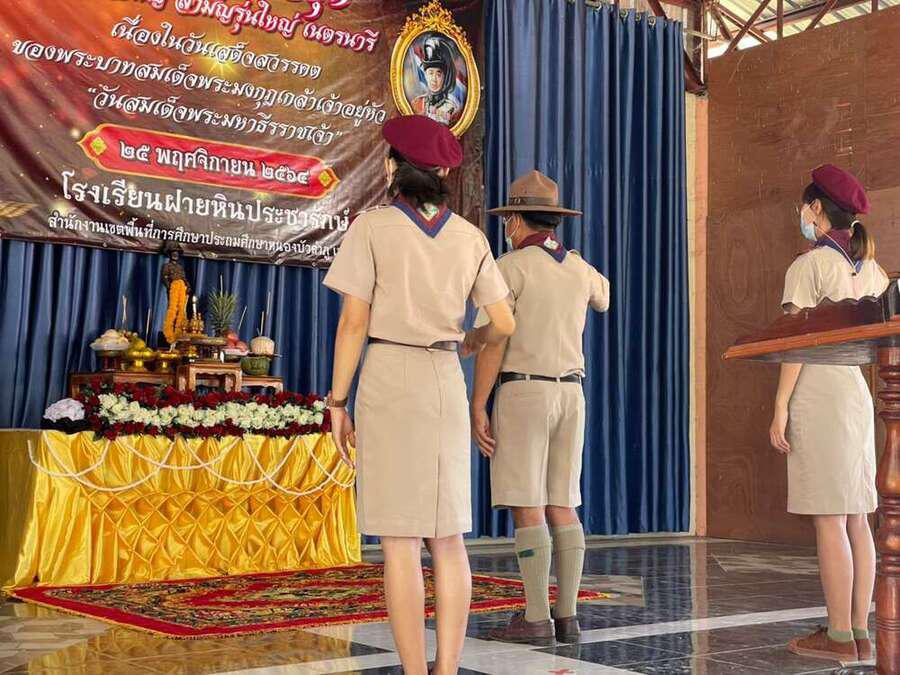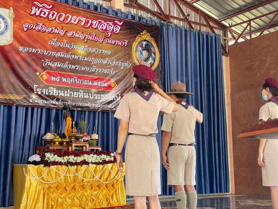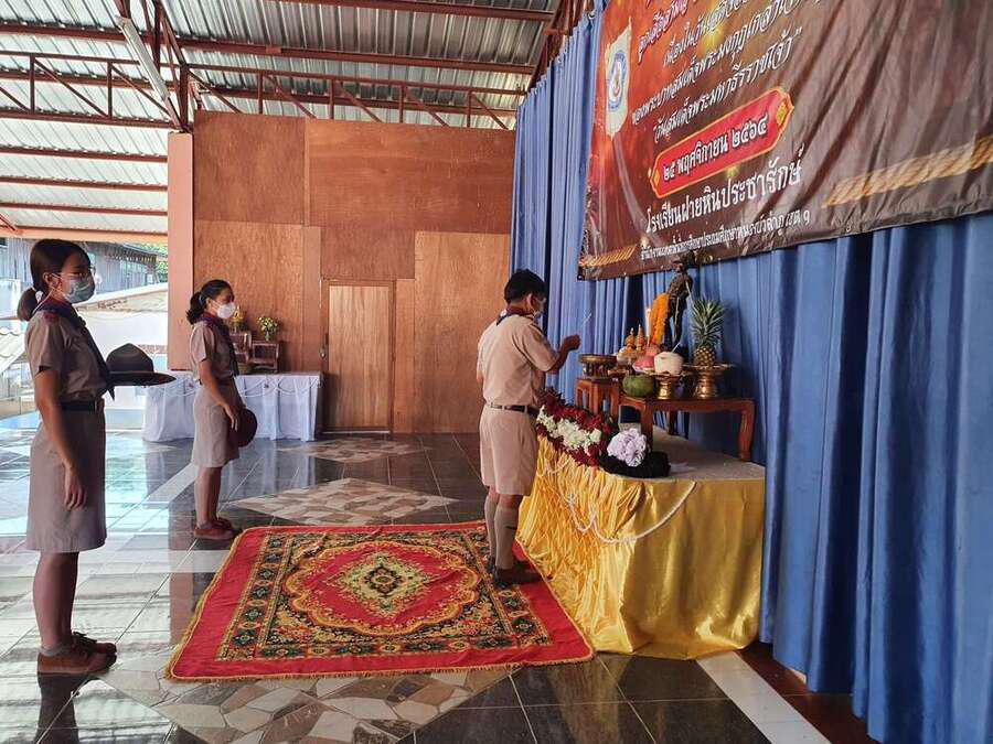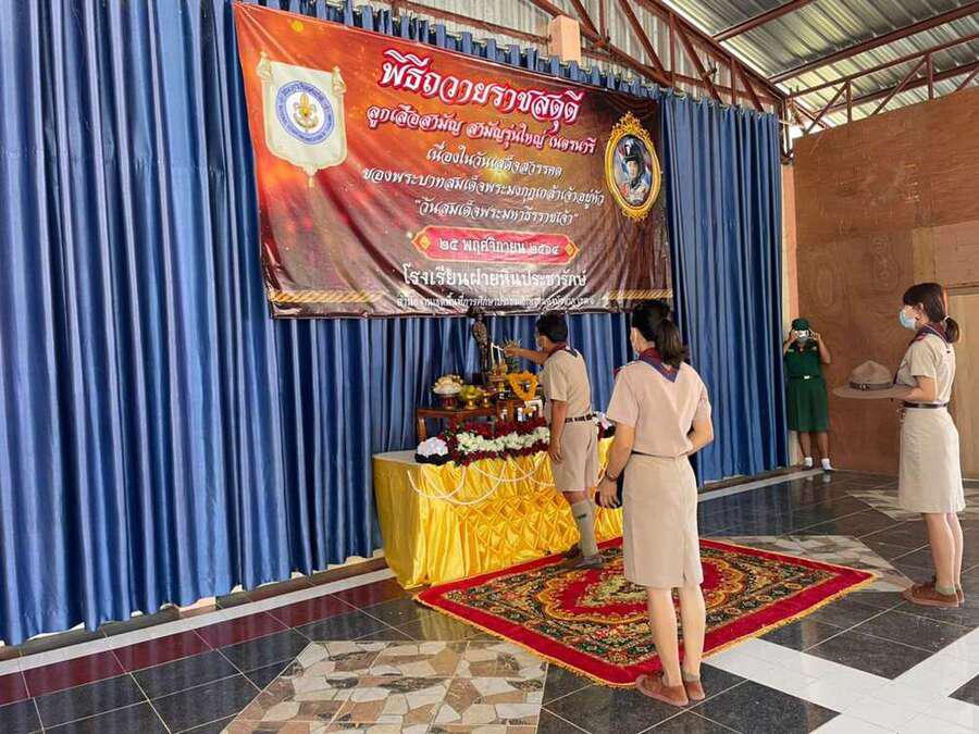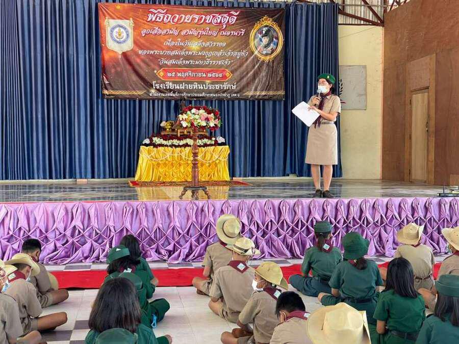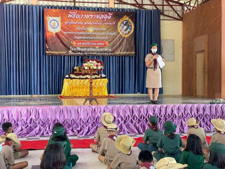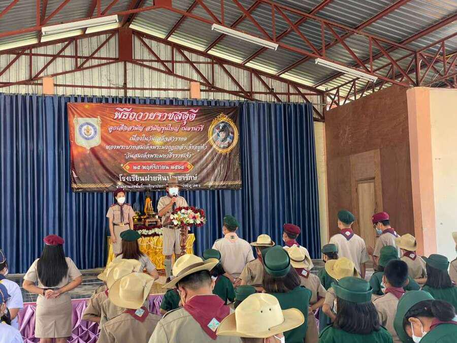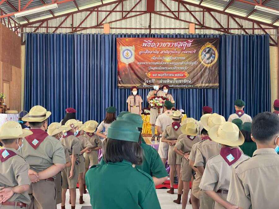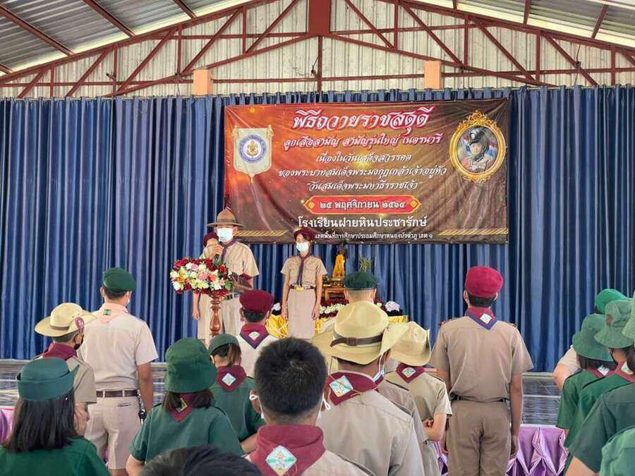 วันที่ 25 พฤศจิกายน 2564 กองลูกเสือโรงเรียนฝายหินประชารักษ์ จัดกิจกรรมราชสดุดี เพื่อน้อมรำลึกถึงพระมหากรุณาธิคุณของพระบาทสมเด็จพระมงกุฏเกล้าเจ้าอยู่หัว พระบิดาลูกเสือไทย เนื่องในวันคล้ายวันเสด็จสวรรคต มีนายสุรวิทย์ ศรีดาวงศ์ ผู้อำนวยการกองลูกเสือโรงเรียนฝายหินประชารักษ์ เป็นประธาน นายมุ่งหมาย ตองสุพรรณ์ ผู้ช่วยผู้อำนวยการกองลูกเสือฯกล่าวรายงาน มีลูกเสือและผู้บังคับบัญชาลูกเสือร่วมในพิธี จำนวน 256 นาย S:0