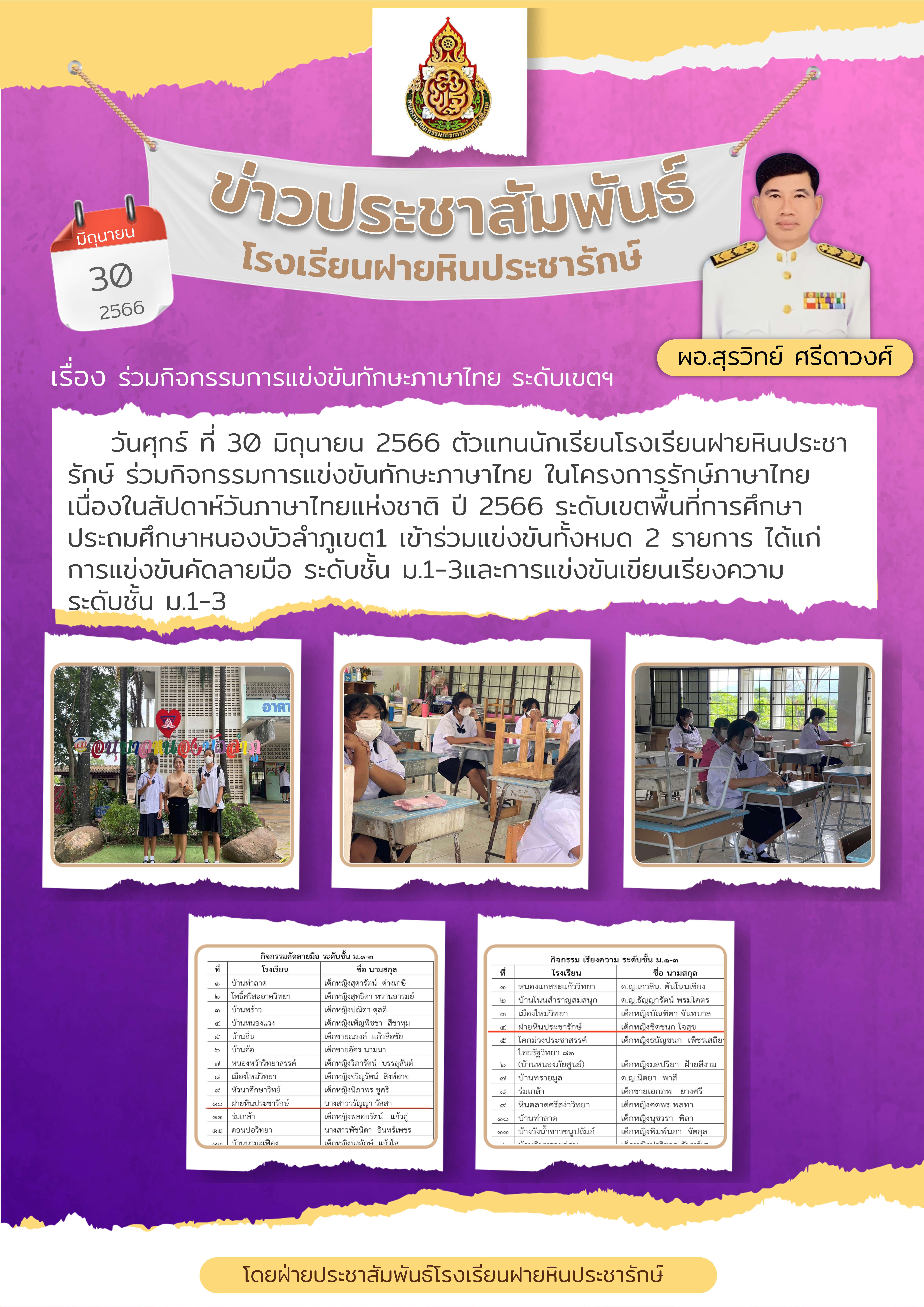 ร่วมกิจกรรมการแข่งขันทักษะภาษาไทย ระดับเขตฯ