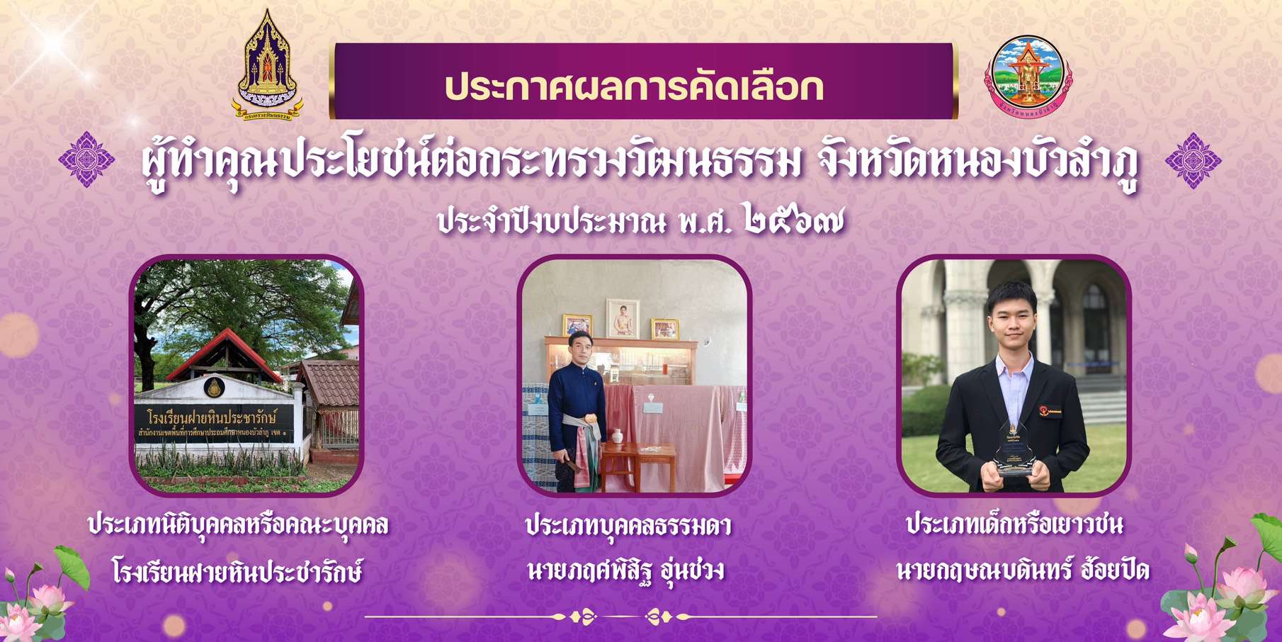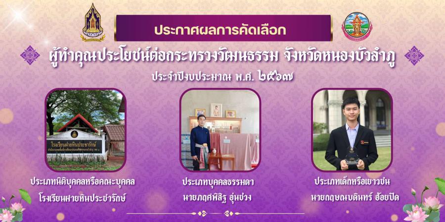 โรงเรียนฝายหินประชารักษ์ ได้รับรางวัลวัฒนคุณาธร ระดับจังหวัดหนองบัวลำภู