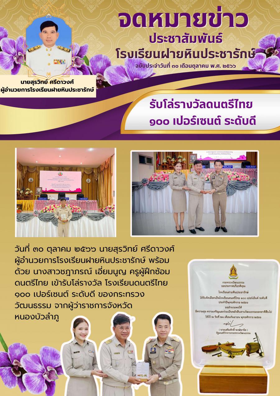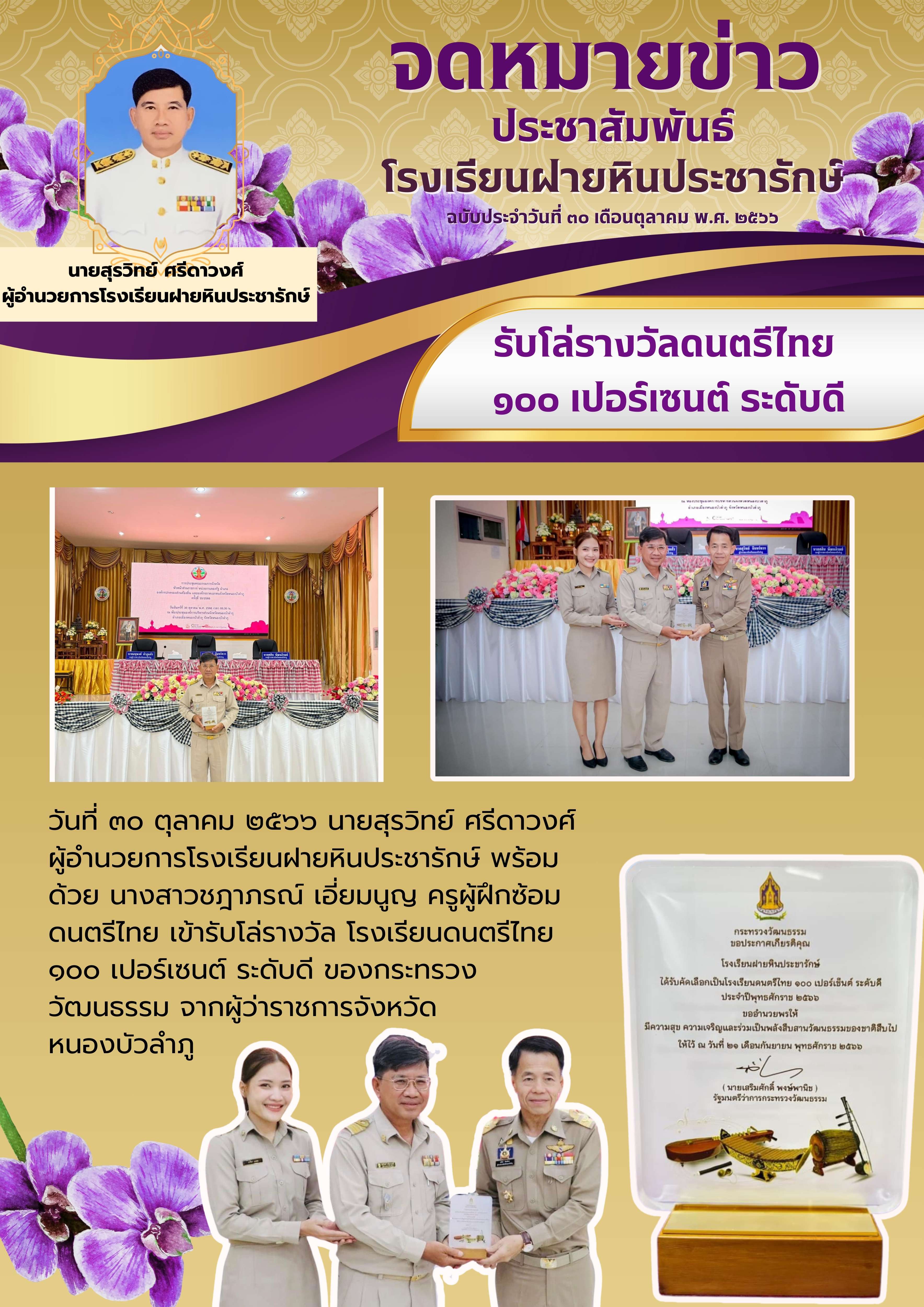 รับโล่รางวัลดนตรีไทย 100%